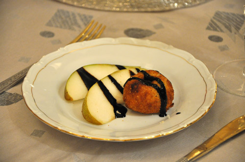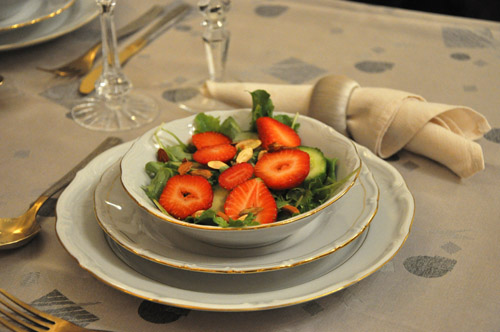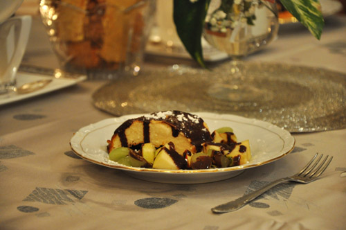 орхидеи навеяны букетом Ксюши, пожалуй в честь них и назову наш ужин. Ужин при орхидеях сервировка ![]() ![]() Холодная закуска Салат с клубникой и орехами пекан ![]() ![]() рецепт Нелли этот салат остаётся у меня фаворитом, лёгкая изысканная закуска, хороий выбор чтобы удивить гостей. а тут ещё клубника подешевела ко дню Св.Валентина. пили с розовым шампанизированным полусухим Жань Поль Шанэ. Горячая закуска Ризотто со спаржей и ароматом трюфеля ![]() рецепт забыла позабоиться о вине, потому пили с найденным сухим чешским белымвином "Людмила" (я как-то рассказывала о нём). Основное блюдо Рагу из телятины с ванилью ![]() рецепт гарнир- картофельное пюре с сыром, как и подавали во Франции. правда сколько сыра я не добавляла, вместо молока использовала сливки, всё равно моё пюре не было таким вкусным. источник советует пить Chateneuf-du-Pape белое, в магазине было только красное, потому купила другое белое вино из той же Долины Роны. ![]() Сырный курс Пончики из сыра дор блю с грушей и бальзамическим соусом ![]() рецепт пончиков (остались с прошлого раза замороженные) пили сотерн Десерт Минималистический чизкейк и фруктами и шоколадным соусом ![]() рецепт с кук-тока, потом вставлю ссылку. на чизкейк не сильно похоже, но вкусно. |
