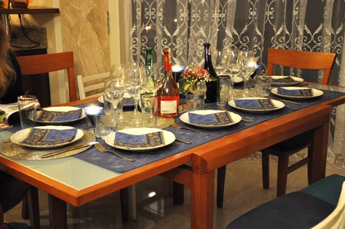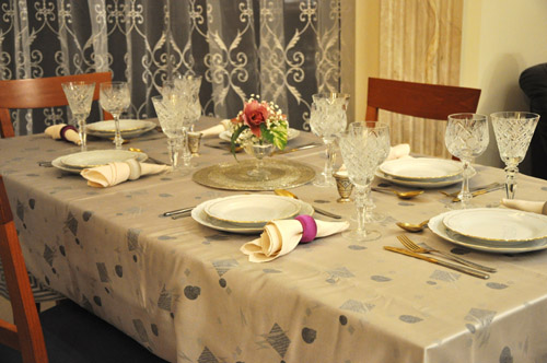 ещё одна сервировка, с дня рождения. поскромнее предыдущей- салфетки хоть и бумажные, но всё равно подобраны под цветовую гамму.