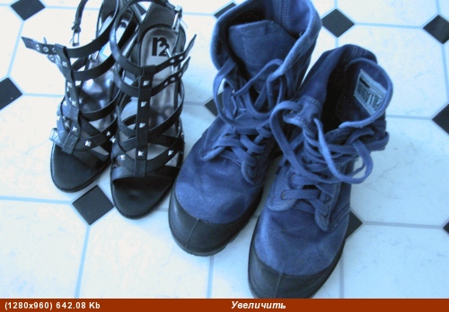 Цены писать не буду, а то вдруг есть те, кому такие лапти понравятся, а магазина DSW рядом и нет... етак и из окна можно... Снимок синий - сделала чужим фотоаппаратом. ![]() вторые - джинсовые высокие кеды. Можно носить "как есть", а можно отвернув отвороты и пристегнуг их к "телу" |
