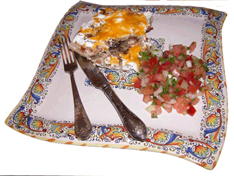 Спасибо, Наташ - обязательно сделаю Ещё одно блюдо из мексиканской кухни. По-моему, его стоит сделать, хотябы из-за названия. Кстати, интересно, можно ли тортии в Песах? Тесто не бродит, а состав тот же: мука и вода... ЧИМИЧАНГА 3 куриные грудки без костей 1 лук, нарезать 1 зелёный сладкий перец, мелко нарезать 2 ч уже приготовленой фасоли пшеничные тортиии 2 ч сыра чеддр 1-2 ч сальсы Нагреть духовку до 425Ф. Лук и перец сотировать в масле. Курицу нарезать на тонкие полоски и добавить к овощам. Добавить немного тмина, соль, перец и толчёный чеснок - ето всё на вкус. Помешхивая дотушить до готовности курицы 3-5 минут. Снять с огня, переложить в миску и добавить 0.5 ч сальсы. Перемешать. На середину тортии (если недостаточно мягкая - прогрейте в микровее или на водяной бане в фольге) положить фасоль (около 1/4-1/2 ч) и столько же куриной смеси, сверху добавить 2 ст л сыра. Завернуть конвертом. Положить в протвень в один слой, залить сметаной и посыпать сыром. Запекать 15 минут. Подавать с дополнительной сальсой. |
