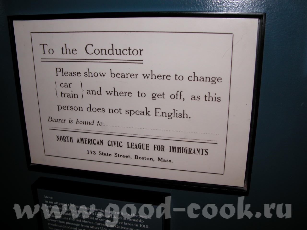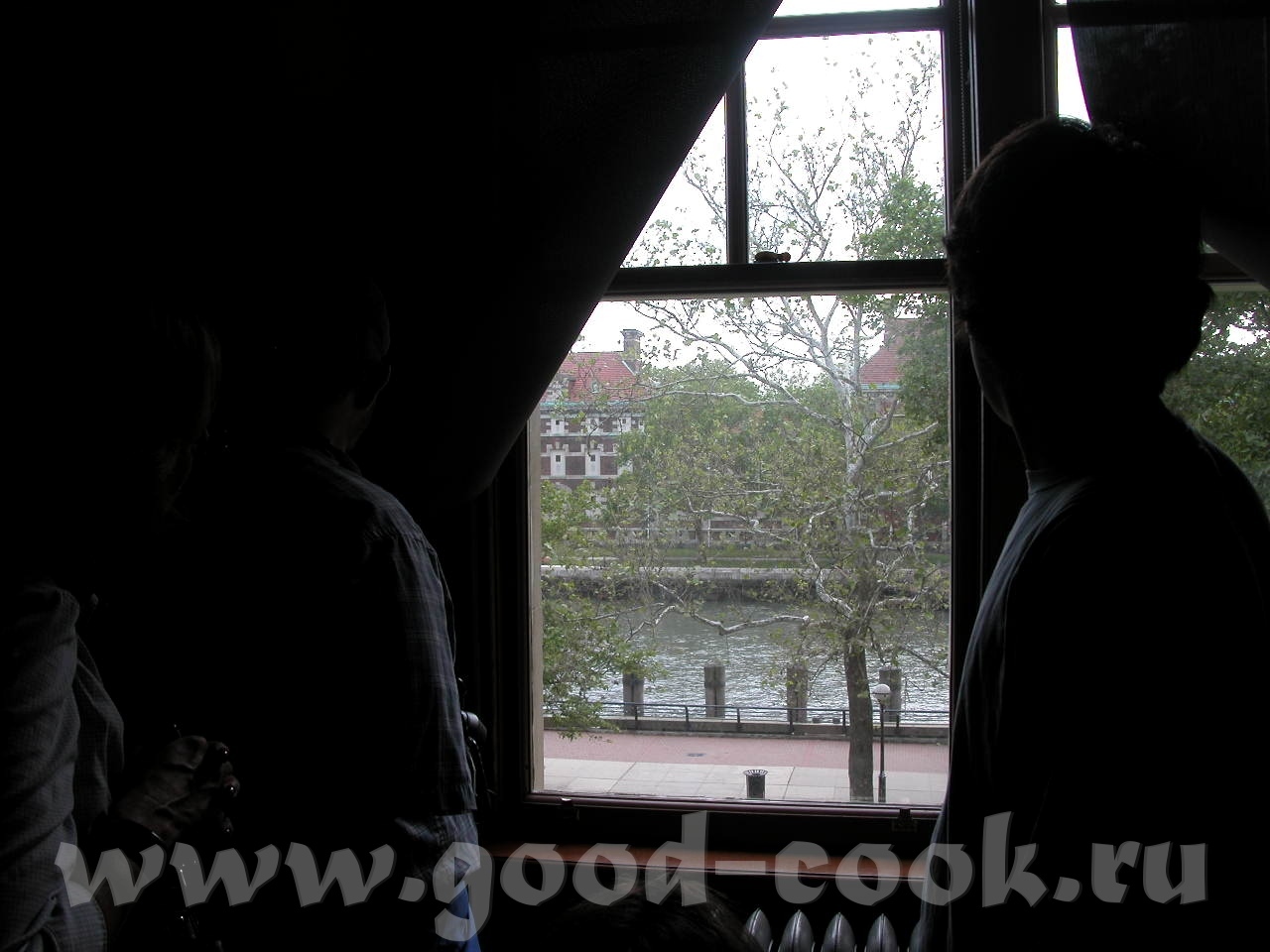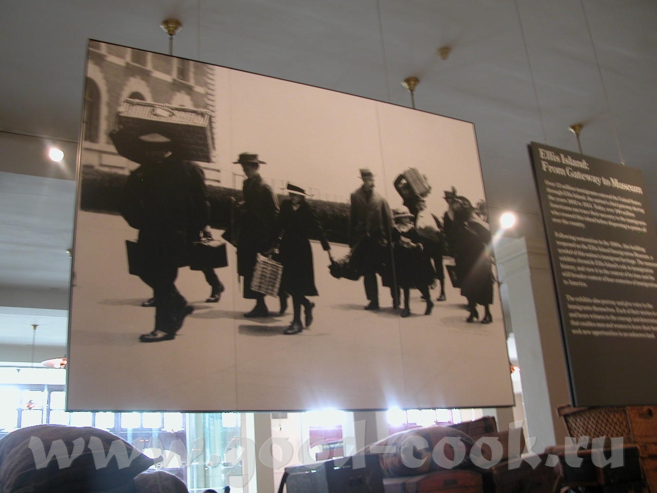 Вернитесь опять к фотографии регистрационной комнаты. После врачебного осмотра было собеседование. При посадке на пароход человек заполнял вопросник из 20 с чем-то вопросов. Сейчас етот листок был в руках клерка, который задавал практически те же вопросы и сверял с данными ранее ответами. В глубине зала видны три двери. "Место слёз". В средню и правую (кажется) направлялись люди, которым открыт вход в страну. Разница была в том, куда они направлялись: центральная дверь - НЮ и ближайшие штаты, правая - остальные. А вот левая дверь как раз и была причиной того, что место было связано со слезами. В неё направлялись люди, которым было отказано во вьезде в страну. Иногда ето был член семьи, и вот именно у етих дверей и принималось тяжёлое решение, возвращается ли назад вся семья или только её несчастный представитель. Дети, родители, братья, сёстры часто именно здесь они и видели друг друга в последний раз...