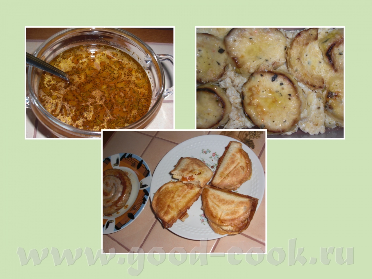 Здоровскоо! Ждем фоторассказа! Про ремонт обращайся Девочки, кто не успел пообедать, прошу к столу! На первое - харчо На второе - кабачки, запечоные в сливочно-чесночном соусе и немецкие колбаски На прикуску - грячие бутеры из сэндвичницы с сыром памидором и пастормой. ![]() И обчного нарезного тоже отличные бутики получаются, а не только из хлеба для тостов. Вот какие они из сэндвичницы, хлеб в ней "запечатывается", вот такие чумаданчики получаются. ![]() Иришкин nukri, возвращайся скорееееей! |