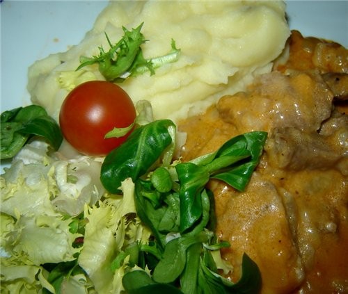 Наташ, Галя тут очень подробно все написала, в чем отличие гуляша, азу и бефстроганова. От себя добавлю: да, бефстроганов из говядины, мясо отбивается, потом режется длинными полосочками, как картошка фри. Вот, посмотри мой РЕЦЕПТ, если интересно. Гуляш - блюдо венгерское и обычно тоже из говядины, кусочками кубиками и с большим количеством подливы ( даже говорят, суп-гуляш), с томатом и пряностями, могут быть добавлены овощи. А вот Азу - это по-моему блюдо из татарской кухни, а значит, опять говядина. Мясо обжаривают и тушат с картофелем, помидорами и часто добавляют соленые огурцы. Из свинины можно сделать, но это уже будет не по-татарски Рики Еще бы такое лекарство не помогло! marele Лена, ждем тебя с нетерпением, здоровую и веселую! Выздоравливай и приходи, мы на кухне все форточки закроем, чтобы тебя не продуло! Дефченки, у меня вчера тоже прикол с обломом вышел! Meile Галя, рулетик славный получился, а овощи как всегда на высоте! |
