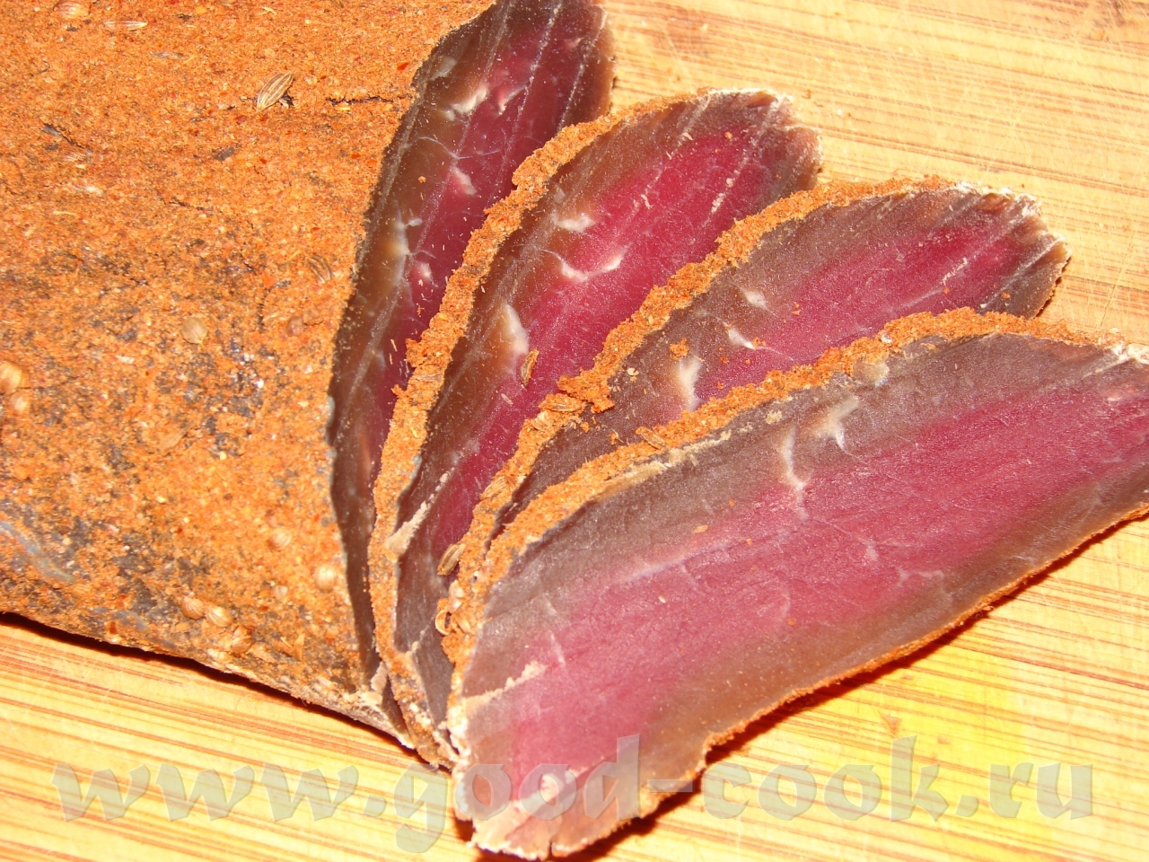 Нинуль, рецепт бастурмы Кроша Шоколад люблю горький, с мятой. Сливу очень люблю, но в сыром виде А мне вчера неожиданно подарили банку конфитюра из лепестков роз Barbariscka Василис, спасибо Львица Ну Настьььь, где я ту оленину возьму? Что было, давно съедено.. В этот раз просто кусок мякоти телячьей... Следующую буду из вырезки ваять |
